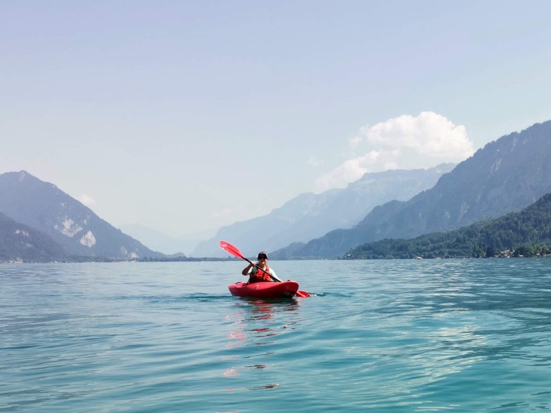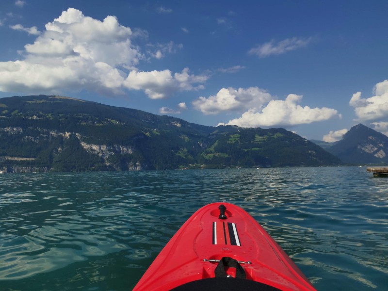 Den Mittwoch nahmen wir bewusst ruhiger. Eine kleine Kajaktour, viel Sonne, viel Wasser – genau das, was man nach einer Bergtour braucht. Abends gab es Raclette im Garten unseres AirBnB. Sommerferien können so einfach und so schön sein.