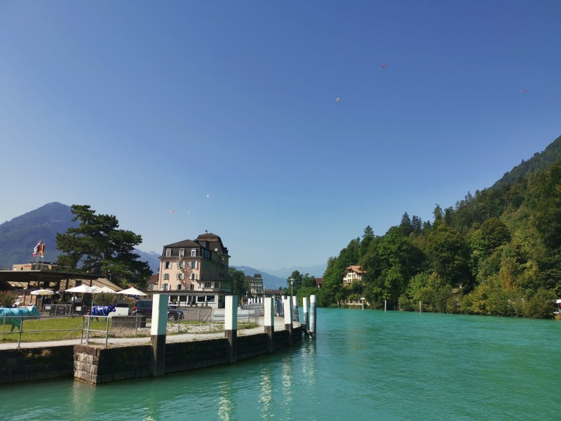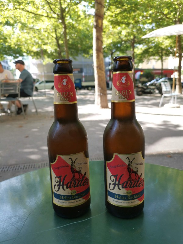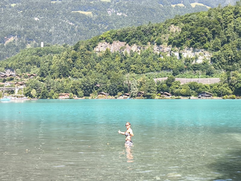 Für Montag hatte ich etwas Besonderes geplant: eine Bier-Degustations-Tour in Interlaken. Rund 8 Kilometer, 200 Höhenmeter, fünf Stationen, zehn Biere, ein Mittagessen und eine Schifffahrt – ein Programm, das sich sehen lassen kann. Schon um 10 Uhr morgens standen die ersten zwei Biere vor uns. Etwas früh, ja, aber es gibt definitiv Schlimmeres. Der Weg führte uns durch Interlaken Richtung Bönigen, und natürlich konnte ich es nicht lassen, unterwegs kurz in den erfrischenden Brienzersee zu springen.