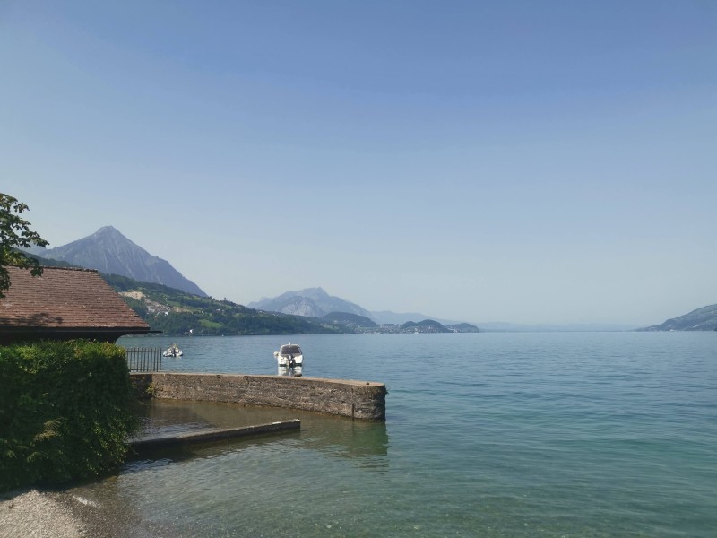 Unsere Ferien am Thunersee begannen dieses Jahr mit einem sanften Ankommen: Am Samstagabend, dem 9. August, erreichten wir unser AirBnB in Leissigen. Wie immer wurden wir sehr herzlich empfangen. Die Zeit reichte gerade noch, um zum See hinunterzugehen und den Sonnenuntergang zu geniessen. Der Himmel brannte in warmen Farben, das Wasser glitzerte – ein perfekter Start.